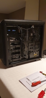 Pose de la carte graphique, du lecteur optique et du hdd puis le plus compliqué (pour moi en tout cas) branchement de tout les cables et rangement de ceux ci pour laisser passer au maximum le flux d'air: